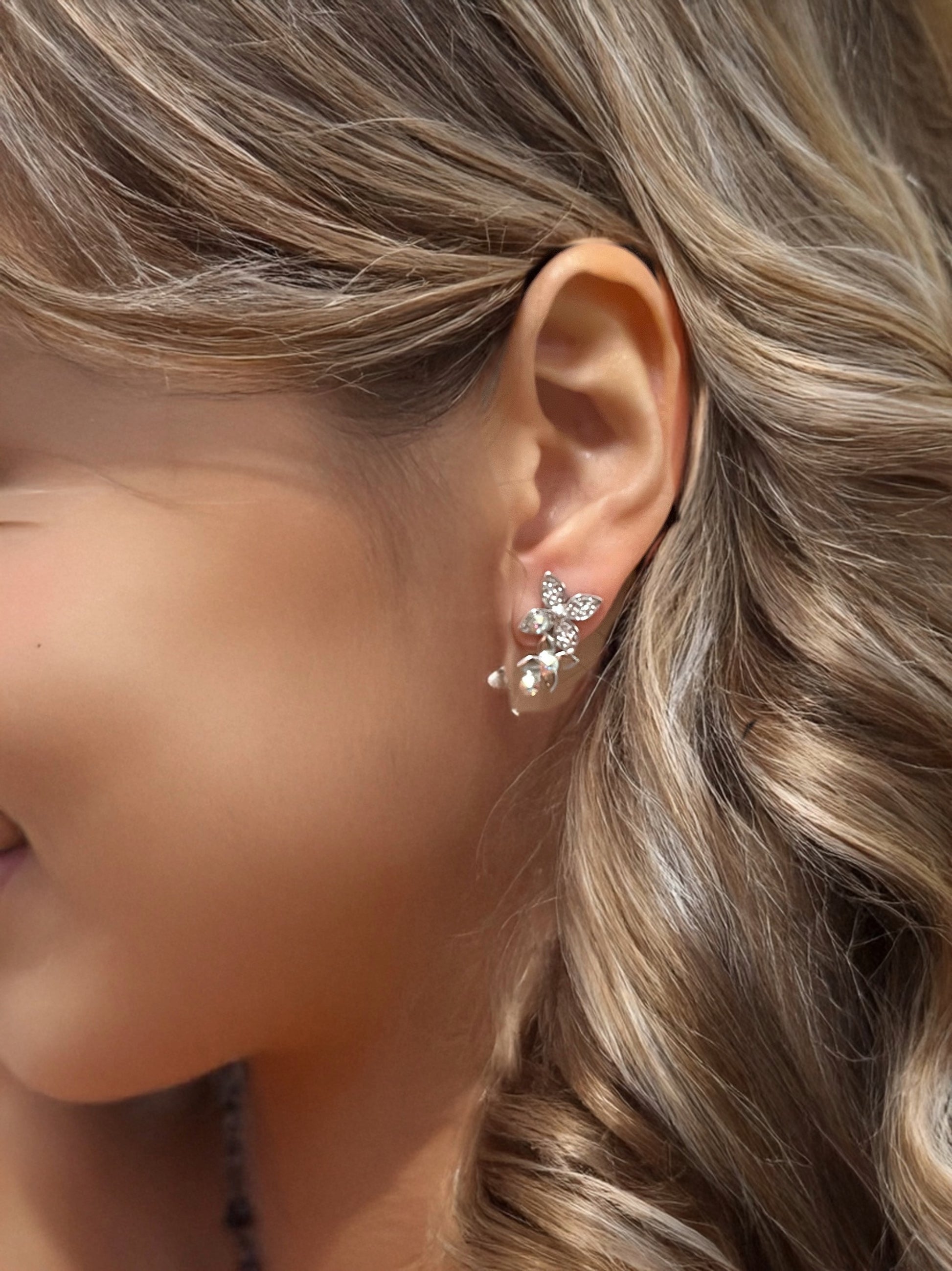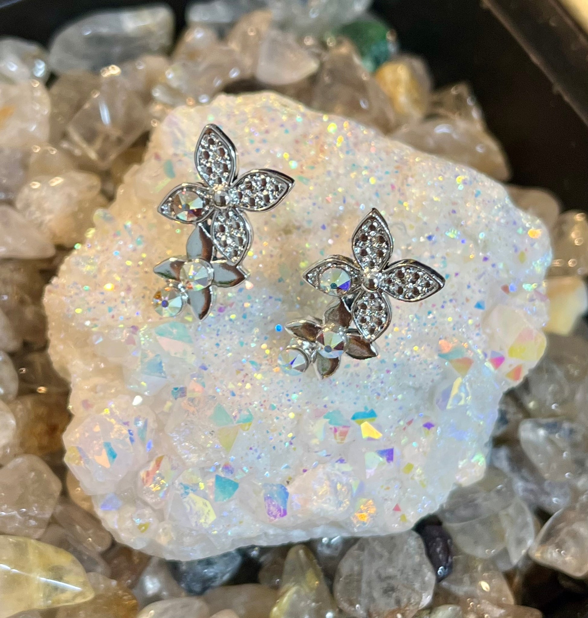 花の形をしたモチーフに、透明感あふれるクリスタルを配置。